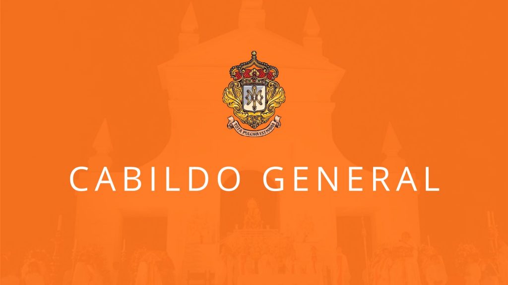 En cumplimiento de lo ordenado en nuestras Reglas y en base al acuerdo adoptado por la Junta de Gobierno de esta Hermandad, en sesión extraordinaria del Cabildo de Oficiales, el pasado día 23 de agosto, se le cita a Vd. al Cabildo General Ordinario de Elecciones que tendrá lugar (D.M.) el viernes 12 de Diciembre de 2025, a las 19:30 horas en primera convocatoria (si hubiere suficiente quórum) y el lunes 15 de Diciembre del presente a la misma hora en segunda y última, en nuestra Casa de Hermandad (Cita en la C/ Iglesia n° 30).
